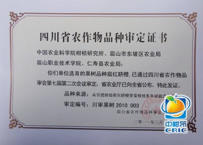 | 3 | 眉红脐橙 | 中国农业科学院柑桔研究所 陈善春等 | 川审果树 2010003 | 四川省农作物品种审定委员会 |