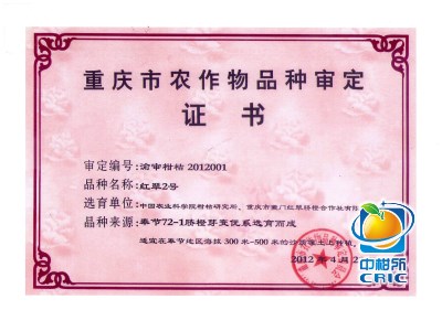 | 6 | 红翠2号晚熟脐橙 | 中国农业科学院柑桔研究所、重庆市夔门红翠脐橙合作社有限公司 钟广炎、李良蓉、王成秋、闫树堂等 | 渝审柑桔2012001 | 重庆市农作物品种审定委员会 |