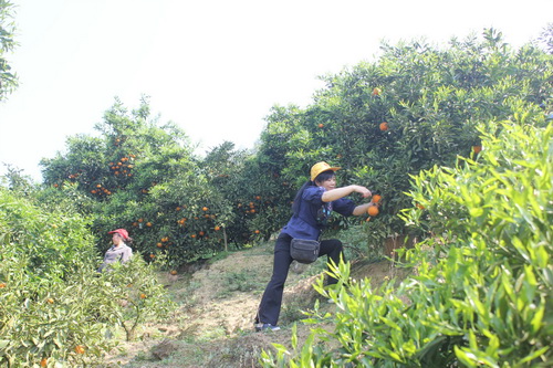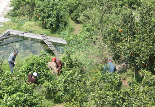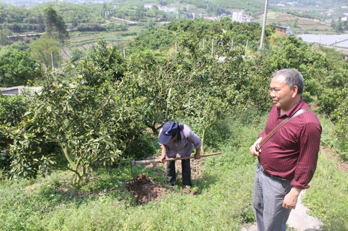 中华村橙绿果园有中晚熟凤冠橘400余亩,通过重庆主城设点在市场线下和网络线上方式,每年大部门产品销往上海、广州等大城市。“施肥管护要多用有机肥,这样的果子更便于储存和保鲜运输。”罗玉东与业主交流近期柑橘管护情况,走进果园指导工人挖坑施肥。