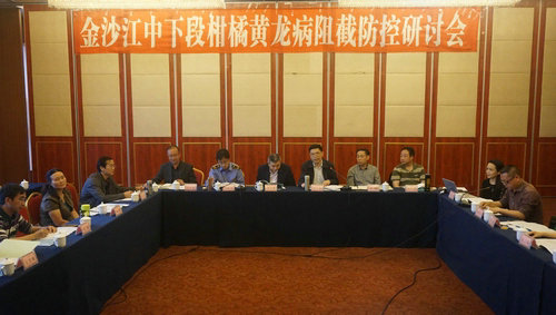 会议实地考察了金沙江下段部分区域地理地貌和柑橘种植情况,调查了柑橘木虱发生情况;分析讨论了金沙江中下段以及长江中上游柑橘黄龙病防控形势、防控对策;对四川省农业厅植检站提出的“金沙江中线段柑橘黄龙病阻截带建设”项目做了专门论证。该项目是根据近年来柑橘黄龙病在全国北扩趋势,按照农业部柑橘黄龙病阻截防控的总体要求,为阻止该病从金沙江向我省宜宾、泸州柑橘主产区及重庆、湖北等整个长江柑橘带扩散蔓延而提出的。项目位于金沙江中下段,涉及四川和云南两省的屏山县、绥江县和水富县,整个阻截带沿金沙江流域全长约90公里,分为防控区和缓冲区两大区域,分别发挥不同的阻截功能和作用;主要建设内容:一是建立信息系统,完善监测预警体系,强化病树和木虱的监测与调查,适时掌握疫情动态;二是严格科学砍除病树,结合其它产业项目逐步改种其它经济作物,逐年缩小柑橘种植面积;三是开展综合防控,控制木虱种群数量,控制柑橘产业发展规模。