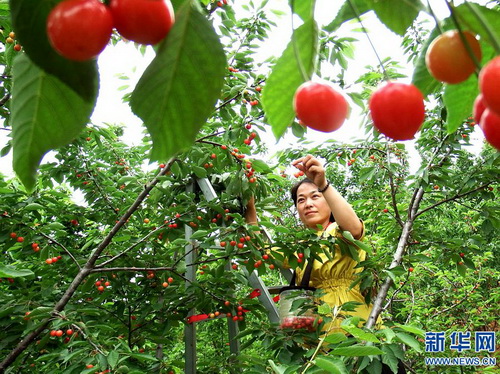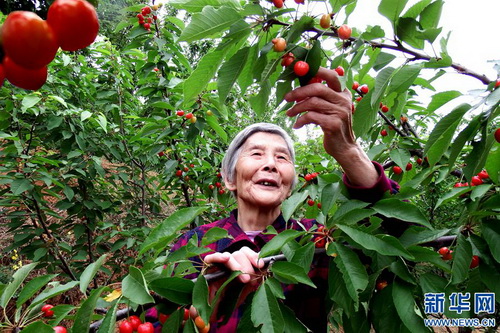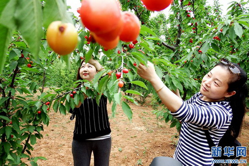 5月7日,河南洛阳市的许多市民利用星期天来到新安县磁涧镇礼河村的千亩樱桃基地采摘樱桃。近年来,礼河村村两委带领村民大力发展沟域经济,结合地域特点,引导村民种植大樱桃,目前发展有3000多亩,荒山变成了摇钱树,给老百姓的收入带来很大的提升。同时,该村利用樱桃发展旅游业,增加了村民的收入,这是礼河村因地制宜发展经济的扶民富民的一个实实在在举措。 新华网发(曹福川 摄)