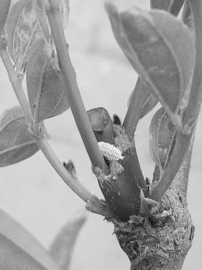 枣粉蚧通常以成虫和若虫刺吸枣枝和枣叶中的汁液,导致枝条干枯、叶片枯黄、树体衰亡,减产严重。该虫粘稠状分泌物常招致霉菌发生,使枝叶和果实变黑,如煤污状,影响枣果品质及产量。