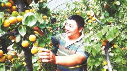 5月4日,夏县胡张乡东张南村村民王大力正在自家温室里采摘“金太阳”杏果。他一共种了8亩杏树,每亩挂果2000余公斤。价格也很稳定,三年来基本保持在每公斤12元以上,除过成本,年收入十五六万元左右。在当地政府积极引导下,该村目前已种植早熟杏树100余亩。杏果成熟期,忙不过来的果农还得雇用本村留守人员,既增加了其他村民的收入,自己也赚得盆满钵满。 任红星 张建刚 摄影报道