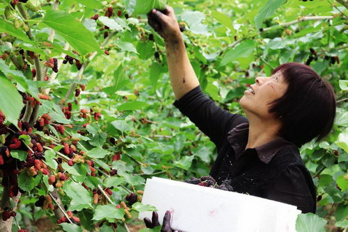 目前,周至县马召镇已发展桑果种植500亩,成为当地果农增收的新亮点。下一步该镇还将继续引导果农发展特色产业,把水果种植作为促农增收的重要渠道。 本报记者 牛博成 摄
