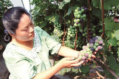 袁群辉以前在外地务工,2013年她回到家乡流转50多亩土地,建起了葡萄园。