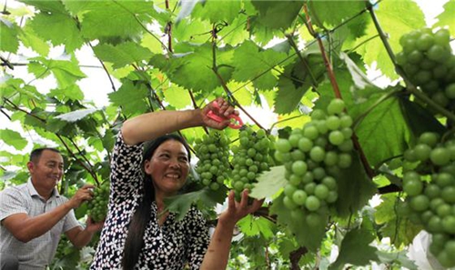 这几天,位于重庆市永川区青峰镇牌坊坝村的葡萄基地里,白的、紫的、绿的……颜色各异、晶莹透明的葡萄在又大又绿的葡萄叶下挂着,整个葡萄早已是硕果累累,葡萄飘香。种植户告诉笔者,基地种有葡萄100多亩,有香妃、玫瑰香等多个葡萄品种,因采用的是大棚种植,葡萄成熟期比市场提前了半个月。今年的产量会比去年增加30%,预计达12万多斤。