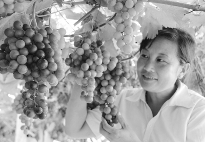 日前,山东省郯城县农业综合开发项目园内生态葡萄硕果盈枝,吸引客商前来订购、游客前来采摘。近年来,郯城县农业综合开发办公室在搞好农田基础配套建设,提高综合生产能力的同时,积极引导农民大力发展生态葡萄种植,扶持农户引进“东方之星”、“阳光玫瑰”、“红巴拉多”等葡萄良种,建起了5000多亩的生态葡萄,并注册了“拓原”葡萄商标,亩均单产2000公斤,亩收入近3万元。 张乐民任世刚摄
