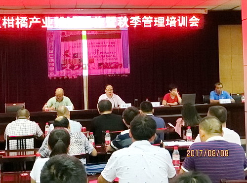 区果品办副主任宋明华对晚熟柑橘基地建设、果园管护和高换改造等建设任务、柑橘“化肥、农药两减”及农产品质量安全工作进行了安排,就晚熟柑橘基地建园及柑橘秋季管理技术进行了培训讲解。副主任毛英杰就去年柑橘项目实施情况及存在的问题进行了总结,并对今年的项目实施提出了要求。