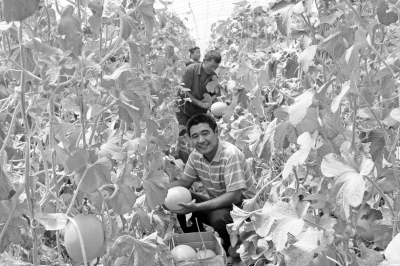 今年,河北省临城县从日本引进甜瓜新品种,通过该县成教学校的农技培训让贫困户掌握标准化种植技术,并向贫困户提供资金、农资、信息等,实现了订单化生产,亩收入达2万元。据了解,该甜瓜品种口感脆甜、果肉多、耐贮运。如今,该县东洞、支角等20多个村1000余户贫困户通过订单种植甜瓜新品种走上脱贫致富路。图为该县东洞村农民在采摘成熟甜瓜。 马金昱申增军王永周摄