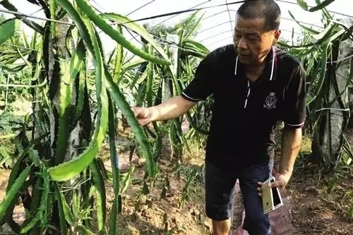 高川休闲山庄大棚的面积并不大,但一走进去就被高大的火龙果植包围了,仿佛置身一片仙人掌丛林中,这里的火龙果都是红皮红心,色泽艳丽、糖度高,价格也不贵。