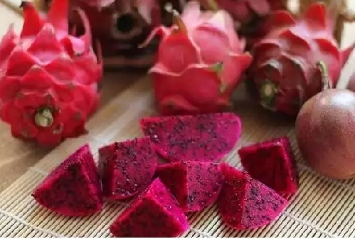 这个红心火龙果品种叫“珍珠”,是重庆市场上比较少见的火龙果品种,口味更香甜,营养价值也更高,在地里摘下一枚还挂着水珠的火龙果,直接剥开吃掉的感觉,简直甜蜜蜜。