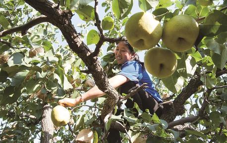近期,河北赵县雪花梨迎来丰收下树的时节。河北省赵县栽培梨的历史可以追溯到2000多年前,雪花梨是这里的特产。目前,赵县的梨树种植面积达25万亩,其中雪花梨13.7万亩,年产雪花梨30万吨以上。(刘玉和 摄)