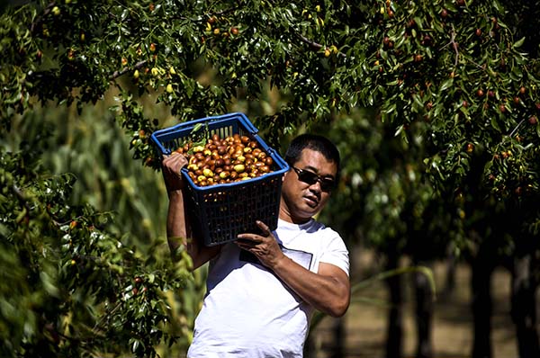 9月19日,村民在搬运刚采摘的金丝小枣。