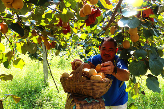 四川新闻网泸州9月20日讯(周超文 张光双 文/图)9月18日,泸州市纳溪区天仙镇牟观猕猴桃种植专合社社员刘贵仁正在采摘猕猴桃。
