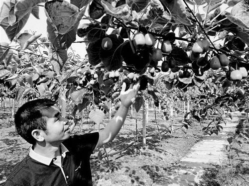 眼下正是猕猴桃大量上市的时节。近日,在铜梁区巴川街道玉皇村猕猴桃园里,工人正在忙着采摘、装运猕猴桃。笔者仔细观察发现,一株株猕猴桃树结的果子不仅长相饱满,而且个头也差不多大。