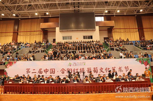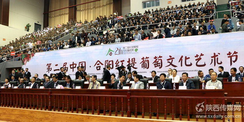陕西传媒网讯(记者 田涯 实习生 王蒙蒙)9月27日,2017第二届中国・合阳红提葡萄文化艺术节在合阳体育馆开幕。本次文化艺术节旨在打造出“特色葡萄产品+旅游”的新名片,来自全国各地的客商代表、领导嘉宾等数千人一同感受葡萄文化盛宴。开幕式后,受邀领导嘉宾及客商代表一同乘车赴丰阜现代农业园区、农垦庄园、富源现代农业园区参观,感受合阳特色的农业文化。