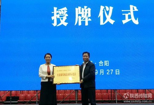 此外,开幕式上,渭南市果业局局长郭雷保为合阳县授“2017最受消费者喜爱的农产品区域公用品牌”证书;陕西省果业协会常务会长白金有为合阳县授“红提葡萄规范栽植示范县”奖牌。