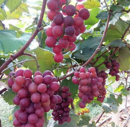 阳光玫瑰葡萄原为欧美杂交种,由日本选育而成,这些年开始陆续引入我国,进行栽植试种和推广。该品种果粒大、含糖量高、风味佳、肉硬皮薄,可以成为葡萄产业的更新替代推广品种之一。夏黑葡萄产于日本,上世纪末开始引进我国。市香蕉蔬菜研究所在2014年开始引进这两种葡萄,每年结果一次。葡萄生产过程中经过了40多项质量检测,确认没有任何药物残留。