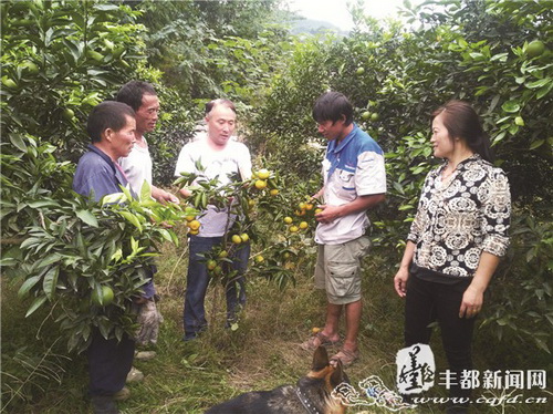 丰都新闻网讯(记者 李达元)眼下距离柑橘成熟采收还有近一个月时间。近日,龙孔镇楠竹村党总支部书记何之炳正现场向果农传授柑橘成熟前期管护技术。