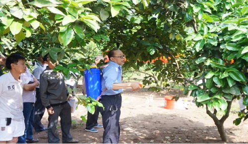 突出关键环节,注重科学防控。柑桔大实蝇防控需把握成虫诱杀、捡拾落果这两个关键点。在每年的5-7月,每间隔5-7天采用果瑞特食饵剂诱杀成虫,其防控效果可以达到90%以上。在9-10月捡拾落果并进行无害化处理,可以大幅减少来年的虫口基数,防控效果很好。