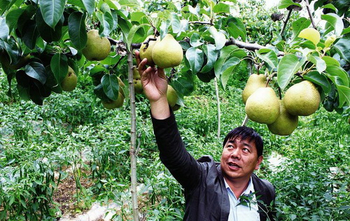 连日来,素有“中国八大名梨”之美誉的贵州省威宁自治县哈喇河镇大黄梨喜获丰收,梨农收获“黄金”梨。金秋十月,瓜果飘香,哈喇河镇大黄梨种植示范产业园内一派丰收的景象,梨树园里果实累累,一颗颗梨树上结满了金黄色的大梨,600亩大黄梨喜获丰收,预计年产量达40万斤,综合产值达200余万元,将有效带动园内贫困户实现脱贫致富。本报通讯员 刘军林 摄