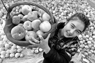 今年,新疆生产建设兵团第2师223团严格按照有机果品生产操作规程生产1000多亩有机冰糖心苹果。果实外皮红褐色,果肉淡黄色(类黄酮含量极高),切开后可以看到小小的金色结晶体,酷似冰糖,甘甜可口,老少适宜,一上市便供不应求,亩均收入高达7万元。图为一名游客在有机冰糖心苹果园内采摘。