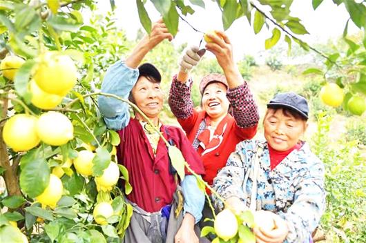 农村新报讯(记者 文凯 通讯员 曹礼达 摄) 19日,湖北清江优利可生态农业开发有限公司位于宜都市高坝洲镇天平山村的柠檬种植基地里,农户们正在采摘柠檬果。该公司采用“公司+合作社+分社+农场+农户+互联网”模式,使产品质量从源头得到保障,除鲜果出口和销售外,还有柠檬精油、柠檬原汁、柠檬粉等深加工产品,大大提高了柠檬产业经济效益。该公司先后在长阳、宜都、枝江、松滋等地,建立了10家柠檬种植合作社,种植面积达2.6万亩,今年已收购柠檬果300多吨,带动大批乡亲走上致富路。