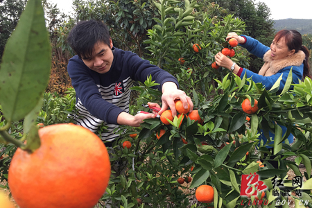 果农开心地采摘橘子