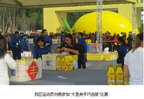 我区组队参加了该次运动会的全部比赛项目,区农委获得“重庆市农民柠檬采收运动会优秀组织奖”;运动员刘燕获“重庆市农民柠檬采收运动会包装女子组三等奖”;运动员谭玉获“重庆市农民柠檬采收运动会体育道德风尚奖”。