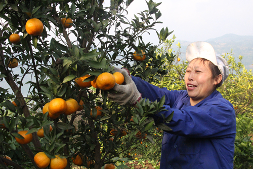 秦淑琼正在采摘柑橘 通讯员 李达元 摄