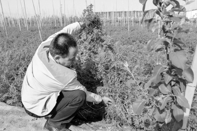 聊城市泰山早霞果品科技有限公司是陈学林团队的试验基地,该公司已采用果园生草技术多年,从2011年开始种长柔毛野豌豆。该公司技术负责人王国政告诉记者:“在我们种过的多种草中,长柔毛野豌豆是最好的。它能耐零下5摄氏度的低温,冬天也覆盖在地面上,春天最早萌发,既抑制了其他杂草生长,又不影响果树生长,而且不用割草。由于多年来一直采用生草技术,我们的果园土壤松软,有机质含量明显增加。”