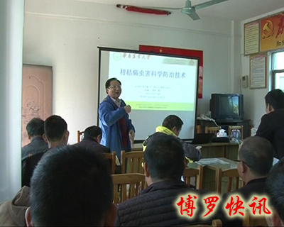 近段时间的寒潮持续时间长、雨量大、气温低,为确保农业生产安全,减少低温灾害天气带来的损失,1月11日,博罗县水果办特邀华南农业大学教授来到横河镇的田间地头现场授课,鼓励农户积极采取防寒、防冻措施,做好柑桔病虫害防治工作。