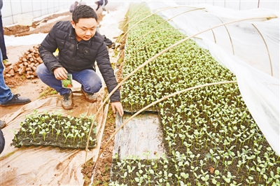 在一块培训西瓜秧苗的大棚,重庆晚报记者看到,秧苗已经有10厘米高,正吐露嫩绿。“西瓜育苗可以采用人工化育苗和工厂化育苗,但人工育苗受气温影响,一般西瓜要七月才能上市。工厂化育苗可以让西瓜4月份就能上市,竞争力强了,卖价也高了,老百姓收入自然高了。”该负责人把一排秧苗拿出,让记者看了个明白。原来在秧苗下方,分布着一根根加温线,通过升温让西瓜种子稳定育苗,而这些西瓜和普通西瓜又有不同,它们属于新型西瓜,还适合雕刻作画。在今年4月,这些西瓜就能成果,运输到重庆市场供市民品尝。