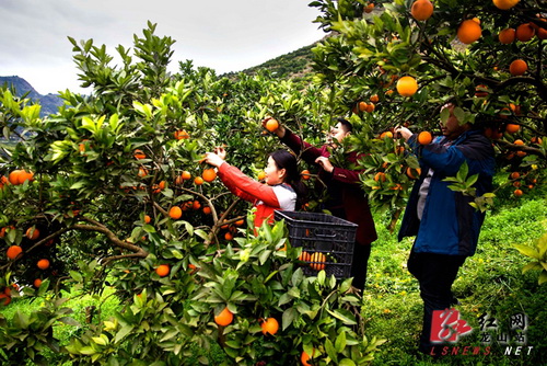 龙山新闻网3月9日讯(通讯员 田良东) 3月7日,龙山县里耶镇比耳村,果农采收挂果近一年的晚脐橙。当天果农利用当地临河全年无霜冻的气候优势,将去年12月份便可采摘的脐橙,挂树越冬到次年3月,既无须防虫防腐,又增加鲜果的品质,受到湘鄂渝边区市场追捧。