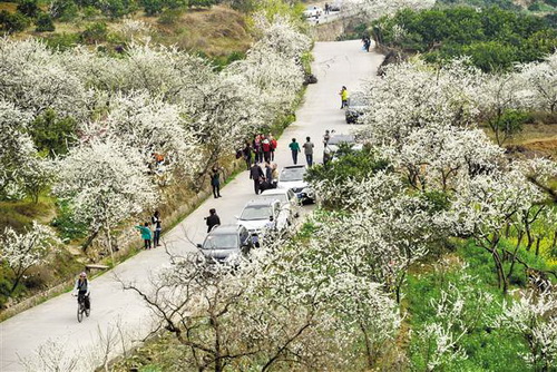 游客赏李花 摄/朱云平