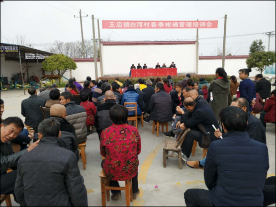 3月13日,在王店镇白河村,当阳市农业局结合柑橘春季管理培训,由市特产技术推广中心专家黄先彪、市农业技术推广中心耕肥站专家庄光泉在全市大力推广应用柑橘有机肥替代化肥技术新措施,并亲自到果园对农民进行现场指导修剪、施肥等。