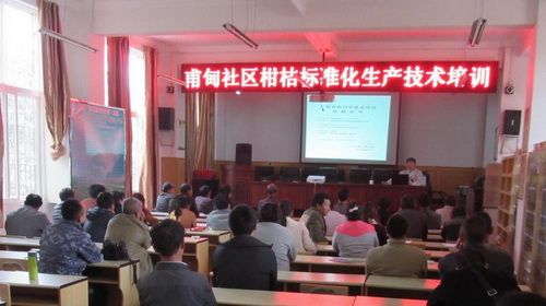 近日,华宁县甫甸社区举办柑桔栽培技术培训会,主讲嘉宾来自广西柳州惠农化工有限公司的专家覃碧宁。甫甸辖区内的12个小组所有种植柑桔的农户,踊跃参加这场期待已久的培训会。