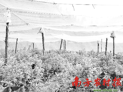 加盖了防虫网的苗圃,里面都是健壮的沙糖橘大苗。