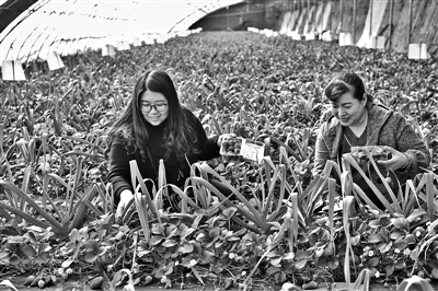 近年来,河北省承德市滦平县不断加大农业品牌建设力度,大力发展集种植养殖、高端加工生产、循环农业、休闲观光于一体的现代化农业产业园区。目前,该县已建成现代农业园10余家。图为近日,在滦平县兴春和生态循环农业示范园草莓大棚中,游客在采摘草莓。 霍艳恩霍腾达摄