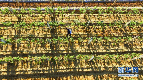 5月3日,河北省遵化市团瓢庄乡农民在葡萄园劳作。新华社发(刘满仓 摄)