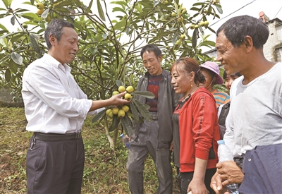 农技人员对枇杷种植户进行现场培训 通讯员 李辉 摄
