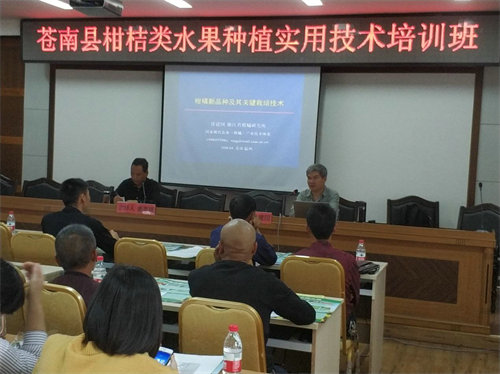 为了提高果农的柑桔种植技术水平,加快柑桔类果树新品种、新技术的推广应用,4月27日,苍南县农业局举办了一期柑桔类水果种植实用技术培训班,特邀请浙江省柑桔研究所资深柑桔专家徐建国前来授课,来自全县的50余名柑桔种植大户参加了培训。