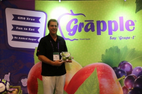 在刚刚落下帷幕的美国PMA国际果蔬峰会(PMA Fresh Summit)上,国际果蔬报道非常有幸地采访到了美国创新型果蔬企业Grapplefruits公司联合创始人Gary Snyder先生。公司因其王牌产品― Grapple(葡萄味苹果)而闻名。Grapple名称来自于英文单词grape(葡萄)和apple(苹果)。目前该产品已经在美国及加拿大的果蔬市场成功推出并获得消费者的青睐,但中国的果蔬市场对这一创新理念及新奇产品仍十分陌生。借此机会,Gary先生详细介绍了产品的诞生灵感、开发过程及公司未来规划。