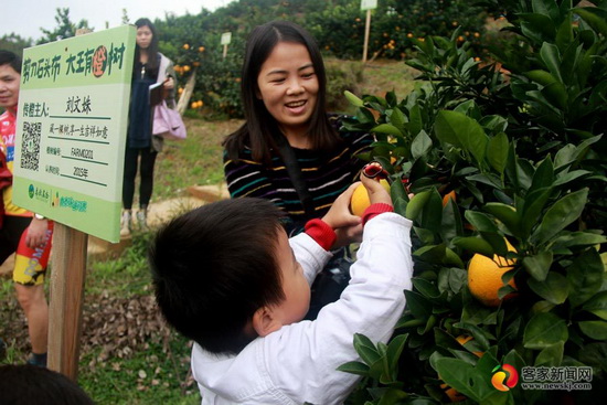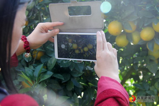 在果园里,记者恰巧碰见了购买橙树的上海客户刘娟,她和儿子正兴致勃勃地在自家橙树旁拍照。“我是在朋友圈里了解到春秋农庄的,通过实时监测,即使我人在上海,也能在电脑、手机上看到我的脐橙树生长情况,就好像自己亲自种养的一样,连这脐橙都有了家的温暖。因为认购了农庄的脐橙树能免费来农庄游玩,这不脐橙要上市了,我便带着我的小宝贝来了!在城市里,很难体会到这种淳朴自然的乡风,来一趟很有意思,一家人其乐融融的,来这边的交通也方便。”刘娟兴奋之情溢于言表。