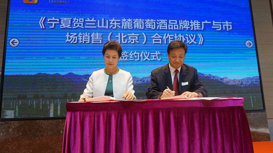 宁夏新闻网讯(记者 王莹) 为进一步打响宁夏贺兰山东麓葡萄酒品牌,加强品牌推广和市场销售,提高宁夏产区葡萄酒的知名度和市场占有率,3月30日,宁夏葡萄产业发展局与合盛文化传媒(北京)有限公司签订了《宁夏贺兰山东麓葡萄酒品牌推广与市场销售(北京)合作协议》。