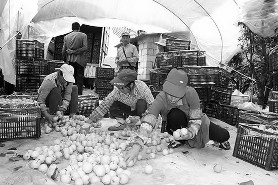 7月15日,工人正在分拣红梨,装箱销往昆明、广西、广东等地。近段时间以来,玉溪市江城镇侯家沟大平地1200亩优质红梨相继成熟上市,吸引了大量收购商前来收购。据悉,在“公司+基地+农户”发展模式带动下,果农种植水平不断提高,所产的红梨肉质细嫩、皮薄水多、酸甜适中,深受市场欢迎。今年红梨的价格每公斤2.7元至3.5元,每亩收入6000元左右,成为农民增收的重要渠道。 特约记者 陈宽 摄