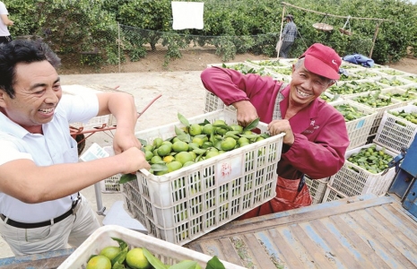 近日,一辆辆来自外地的卡车在仙女镇鲁港村橘园道路间穿行,橘农们把一筐筐刚采摘的橘子搬运上车。枝江市柑橘进入销售旺季,今年该市采取“直销、客商销售、出口、农商对接、电子商务、加工转化”等多元方式,确保柑橘顺利销售。 本报通讯员余丹丹 张园 摄