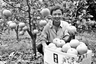 10月6日,安徽省庐江县冶父山镇铺岗村山咀村民组退伍军人夏必胜正在给顾客摘梨。2010年春,退伍不久的夏必胜,凭着十二年军营生活铸就的果敢、睿智,另辟蹊径,种下15亩“晚秋黄梨”。“晚秋黄梨”属于晚熟品种,10月上旬至10月底收获,这个时间段处在各种水果成熟的相对空缺期,市场有需求。夏必胜种植时,只施腐熟的羊粪,结出的梨颜值高,口感好。国庆黄金周七天,基本被顾客在梨园直接买走,15亩梨园纯收入8万多元。 张传保摄