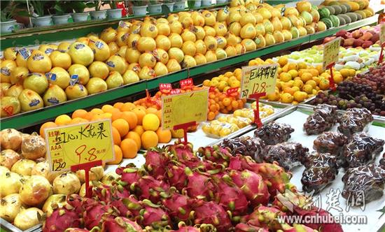 在武昌区卓刀泉一人气较高的水果店内,记者看到秋苹果已上市,橘子、冬枣、石榴等占据了半壁江山。“店里本地宜昌的橘类量最多,每斤4元左右。”水果店齐老板说,外地产的橘子有湖南蜜桔,4斤10元,云南的就贵一点6.8元一斤,都没有本地产的卖的俏。