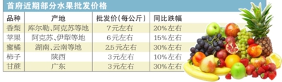 香蕉零售价每公斤4元、蜜橘两公斤10元、柚子每公斤6元……细心市民会发现,初冬时节,首府水果价格比去年更“亲民”。